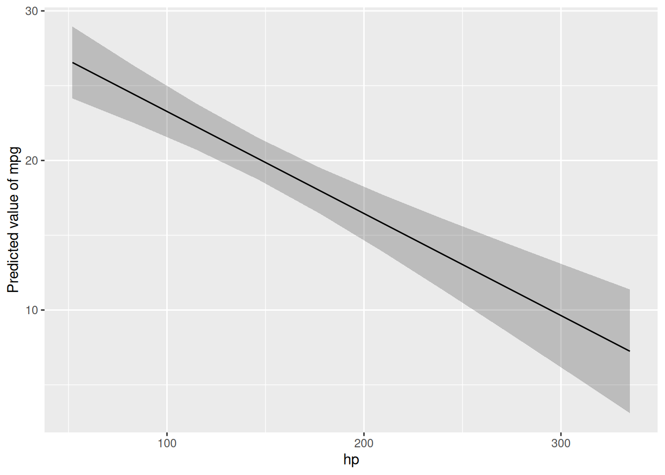 lm1 <- lm(mpg ~ hp, data = mtcars)