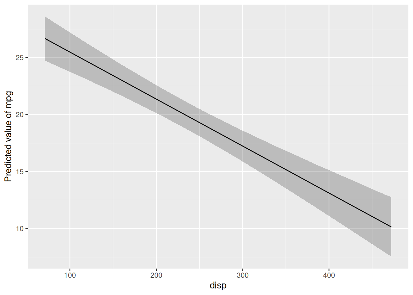 lm2 <- lm(mpg ~ disp, data = mtcars)